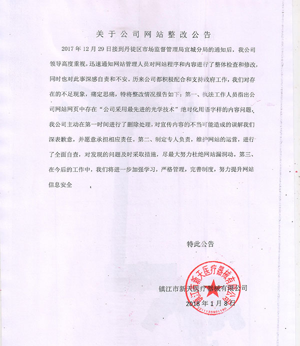 關(guān)于公司網(wǎng)站整改公告